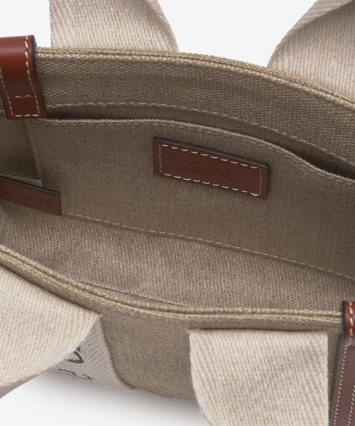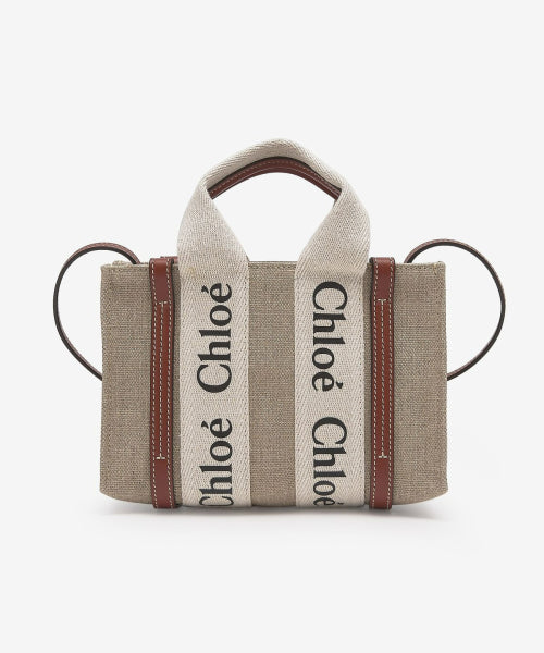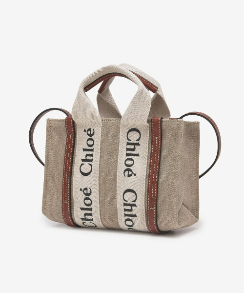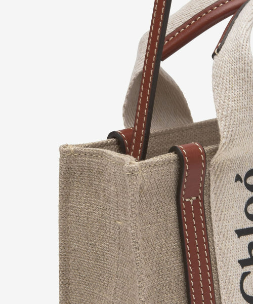 미니 리넨 우디 토트백 - 화이트:브라운 / CHC22AP237I2690U
