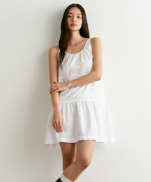 우먼즈 코튼 티어드 미니 드레스 [화이트]