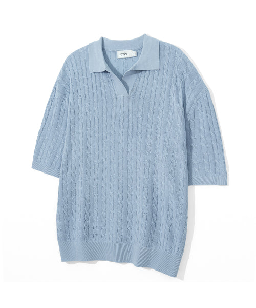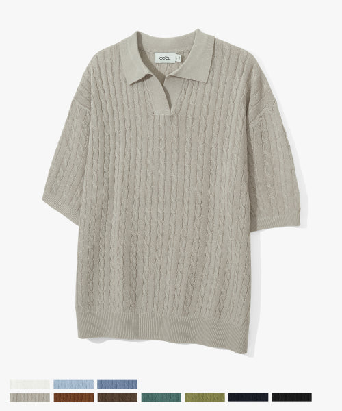 쿨 린넨라이크 케이블 카라 숏 슬리브 니트 10 COLOR
