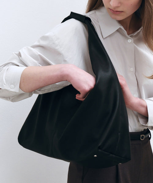 클래식 핸들 레더 호보백 - 블랙
