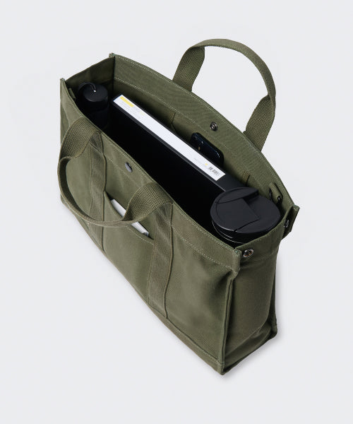 헤비 캔버스 스퀘어 토트 백 [카키]