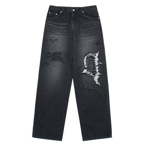 SYMBOL DESTROYED WASHING DENIM PANTS BLACK